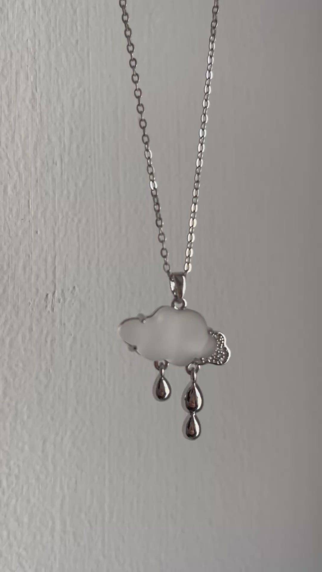 Collana argento 925 con ciondolo in acciaio a forma di nuvola e vetro opaco